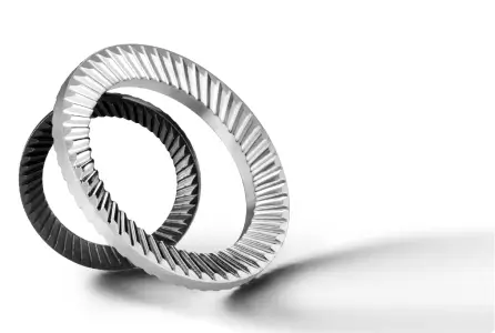 SCHNORR® safety washers are in the form of a disc spring but with a trapezoidal cross-section and serrations on both sides. The outer diameter is matched to the head diameter of the pan head and socket head cap screws.